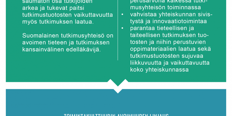 Avoimen tieteen sihteeristössä tuetaan tutkimusyhteisöä laatimaan yhteisiä linjauksia ja suosituksia tukemaan tieteen ja tutkimuksen avointa saatavuutta.